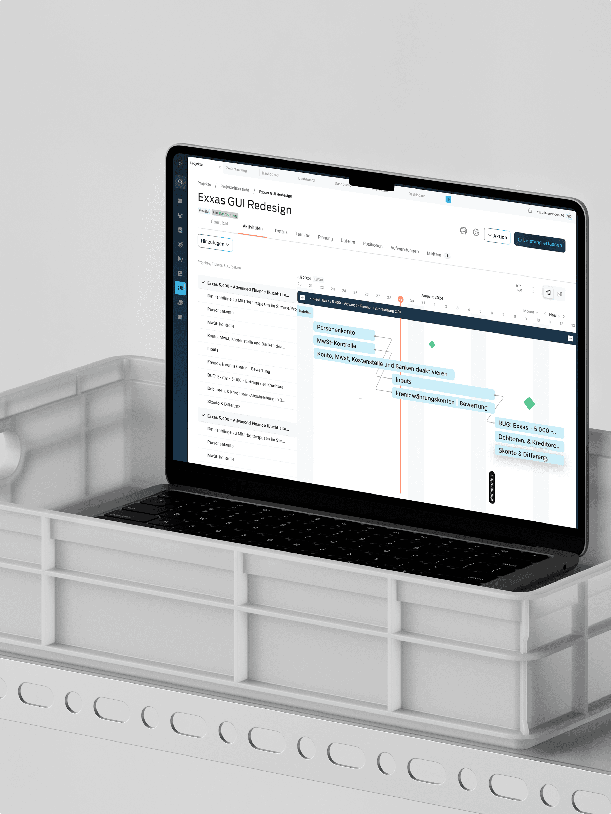 Exxas Platform Redesign Wir haben mit Exxas zusammengearbeitet, um das gesamte UI/UX ihrer Cloud Business Platform neu zu gestalten – und damit neu zu definieren, wie Tausende von Nutzern täglich mit komplexen Tools wie ERP, CRM und Projektmanagement interagieren. Das Ergebnis: eine moderne, mehrstufige Benutzeroberfläche, die auf Klarheit, Leistung und eine starke Markenidentität ausgelegt ist.